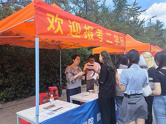 继续教育学院在学校中央大道搭建了宣传区,还贴心的为家长们准备了休息区。对于前来咨询的学生及家长,老师们进行了耐心细致的解答。负责宣传的老师为报名现场的学生及家长系统性地介绍了“数字媒体艺术专业”的授课内容、就业前景、授课时间、毕业证、学位证的发放以及学费缴纳等内容。听完介绍的学生和家长们都表示对学校的第二学历有了深入了解,并表示希望利用大学四年的时间获取多方面的知识,掌握更多的技能。
